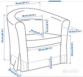 Coppia di poltrone Ikea modello Tullsta verde salvia. Interamente sfoderabili e lavabili in lavatrice. Una usata pochissimo e l’altra mai usata. Vendesi anche separatamente.