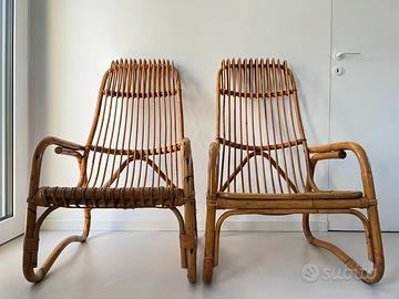 Coppia di poltrone in bamboo originali anni 60