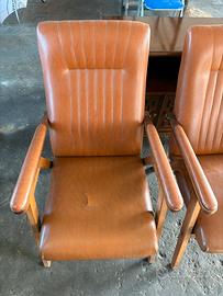 Vendo coppia di poltrone imbottite con braccioli, leggermente reclinabili. Una di queste ha lacerazione del pellame sulla seduta