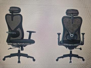 DUE Poltrone con schienale in polipropilene, rete autoportante ignifuga finitura nera. Sedile con struttura interna in multistrato di legno. Supporto lombare imbottito regolabile in altezza e profondità. Braccioli regolabili in altezza con pad morbido. Poggiatesta regolabile in rete autoportante.