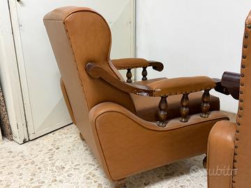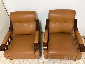 Per realizzo immediato vendo bellissima coppia di poltrone in pelle color cuoio, solide e comodissime, con elegante struttura in legno massello.