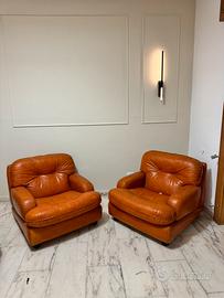 Vendo due poltrone vintage originali in vera pelle color cognac, dallo stile intramontabile ed elegante.