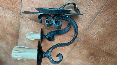 Vendo coppia di portalampada da parete un po' vintage, stile retrò. Abbinabile con un arredamento stile antico. Disponibile anche con un altro portalampada singolo dello stesso stile; vedere altri miei annunci.