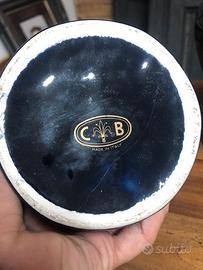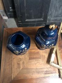 coppia di vasi con coperchio, potiche, vintage e in ceramica smaltata blu notte con decori dorati