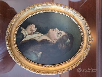 Vendo coppia di quadretti ovali antichi con ritratti raffiguranti un uomo e una donna in stile romantico.
