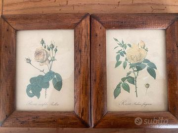 Delicati quadretti raffiguranti eleganti rose, ideali per aggiungere un tocco romantico e raffinato a qualsiasi ambiente. Perfetti per camera da letto, soggiorno o ingresso. Cornice in legno. Dimensioni 12x15 con cornice.