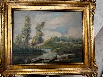 Buon giorno vendo coppia di quadri antichi raffiguranti paesaggio tela olio dipinti a mano da pittori del periodo dell’ottocento firmati in buono stato solo persone interessate prezzo trattabile
