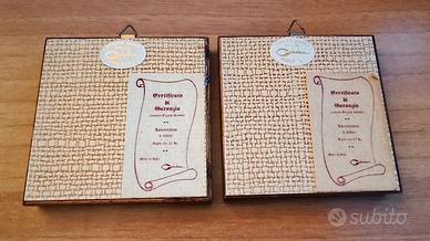 Realizzati ad olio su foglia d’oro 22kt., dipinti a mano, certificati. Dimensione miniatura cm. 4X4, cornice in legno cm. 9X9. Nonostante abbiano 65 anni sono in perfette condizioni, nessun graffio, scrostature o urti. Ottima idea regalo.