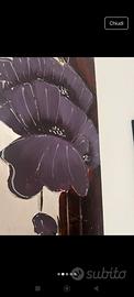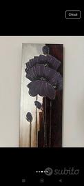 Elegante coppia di quadri realizzati a olio su tela, raffiguranti delicati fiori stilizzati dai toni principali del viola intenso, impreziositi da sfumature neutre e calde che spaziano dal beige al marrone, fino al nero e all’argento.