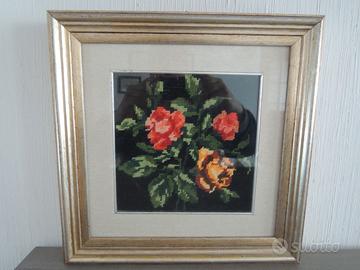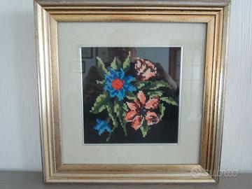 Coppia di Quadri ricamati a mano a mezzo punto su canovaccio che misurano 33x33. Ingombro 25x25. Ideali per qualsiasi tipo di regalo. Non vendo separatamente. NB=Il prezzo si riferisce alla coppia di quadri.