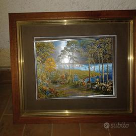 Vendo coppia di quadri su lastra di alluminio (credo) aventi la cornice in legno. Ecco le misure: