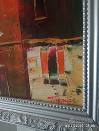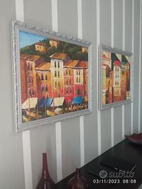 Coppia di quadri( tecnica olio su tela) dimensioni 60x50 acquistati in una galleria d arte a Colonia ( Germania). Dell artista tedesco Andreas Thomas raffigurano 2 vedute di Lisbona. Corredati di certificato di autenticità