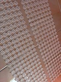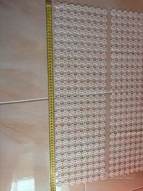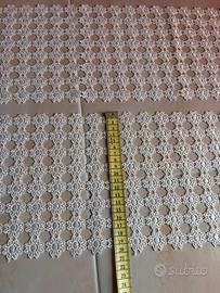 Vendo coppia di centrini rettangolari coordinati. Questo set si distingue per un design geometrico molto raffinato, con un centro a stella che si espande in una trama traforata elegante e leggera. Dettagli del Set: • Quantità: 2 pezzi identici. • Lavorazione: Trama a raggiera con bordi finemente lavorati a piccoli archi. La precisione dei punti testimonia l'alta qualità dell'artigianato manuale. • Colore: Bianco crema / Avorio (tonalità naturale del cotone vintage). • Dimensioni: Diametro di circa 25 cm ciascuno (come mostrato nelle foto con il metro). • Materiale: 100% Cotone ritorto, molto resistente e di ottima mano. Stato dell'oggetto: I centrini sono in condizioni eccellenti, pari al nuovo. Sono stati conservati con cura, non presentano macchie, ingiallimenti o fili tirati. Ideali per chi desidera completare l'arredo di una camera da letto (perfetti per i comodini) o per dare luce a una credenza in salotto. Un tocco di classe artigianale che si adatta perfettamente sia ad ambienti classici che a uno stile Shabby Chic o rustico moderno.