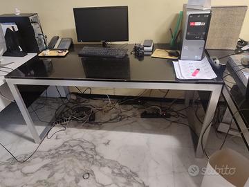 Coppia di scrivanie nere e gambe in acciaio