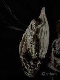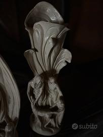 Vendo due sculture decorative in ceramica/gesso di stile moderno, con linee morbide e soggetti figurativi.