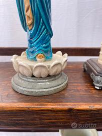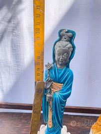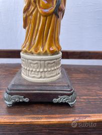 Coppia di sculture orientali anni ’60 – ceramica e metallo colorate Bella coppia di sculture orientali risalenti agli anni ’60, realizzate in ceramica e metallo con finiture colorate. Oggetti molto decorativi, ideali per dare un tocco originale ed esotico agli ambienti. Le figure presentano dettagli interessanti e colori vivaci, con segni del tempo compatibili con l’età. Epoca: anni ’60 Materiali: ceramica e metallo Dimensioni: come da foto Condizioni: buone, Perfette come complemento d’arredo o per collezionisti di oggettistica vintage. Spedizione disponibile previo accordo con l’acquirente oppure consegna a mano.Contattami per ulteriori informazioni o foto!