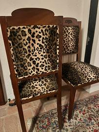Coppia di sedie anni 20 del secolo scorso con rivestimento in pelliccia ecologica leopardata a pelo raso