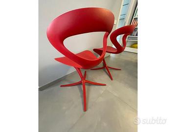 Coppia di sedie Callita di Infiniti, dal design moderno e linee essenziali che si integrano facilmente in ambienti contemporanei. La struttura è solida, realizzata in alluminio pressofuso con seduta in poliuretano rigido verniciato, unendo leggerezza e resistenza. Le sedie presentano, come visibile nelle foto, alcuni segni di usura, che non compromettono la funzionalità e conferiscono al pezzo un carattere autentico. Ideali per chi cerca stile, praticità e un design contemporaneo di qualità.
