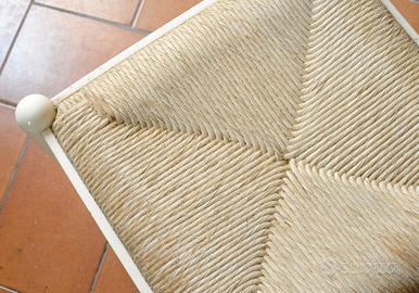 n° 2 sedie da cucina di color bianco, impagliate in condizioni perfette