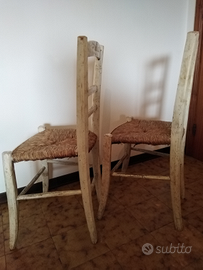 Vendo coppia di Sedie di legno impagliate e verniciate bianche anni '40...Non saprei indicare il tipo di legno... Sono tarlate e trattate con prodotto antitarme... Se qualcuno è interessato a restaurarle o farle restaurare... Disponibile alla consegna a domicilio nel raggio di 20 km...