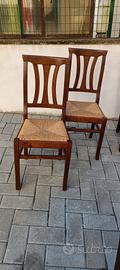 Vendo coppia di sedie in legno massello finitura noce con seduta in paglia intrecciata.