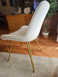 Vendo coppia di sedie Wahson in metallo dorato e schienale in velluto bianco.