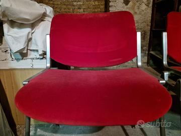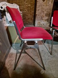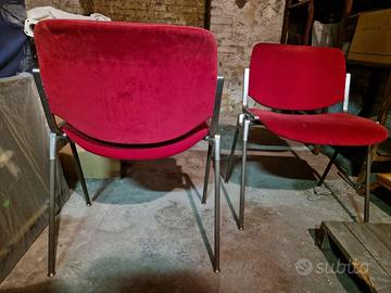 Coppia di sedie metalliche imbottite in velluto, telaio metallico, imbottitura rossa in velluto su schienale e seduta, nel tipico stile degli anni 60, 70, vintage originali dell'epoca.