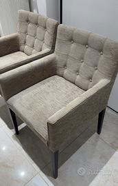 Vendo coppia di sedie/poltroncine rivestite in morbida stoffa, eleganti e comode, adatte sia per il soggiorno che per la camera o l’ufficio.