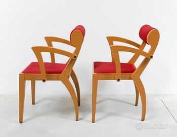 Coppia di sedie postmoderne in tessuto e legno di Bros/s, anni '80