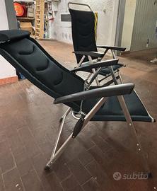 Vendo 2 sedie reclinabili con struttura in alluminio e rivestimento in tessuto nero traspirante.