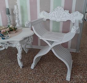 coppia di sedie Savonarola rifatte in stile shabby color bianco, Seguici su Facebook SHABBY CHIC Davide Finotto 3282882270 Sandra Tamiazzo 3283714775
