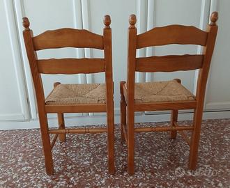 Due sedie rustiche in legno massello di rovere, robuste e resistenti. Le foto sono reali e mostrano lo stato attuale del prodotto: minuscoli segni di usura.Perfette per una cucina rustica, una taverna, una casa in montagna. Contattare solo se realmente interessati all'acquisto alle condizioni indicate. Disponibile per consegna a mano in zona Prenestina Tor de'Schiavi in via Giacomo Bresadola 40 davanti all 'edicola del giornalaio (orario da concordare). Solo 40 euro per entrambe. Massima serietà, non si risponde a richieste di sconto e di informazioni già presenti nel testo.