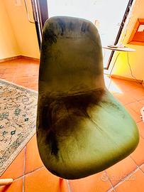 2 Sedie scamosciate color verde oliva con piedini in legno, schienale comodissimo lavorazione artigianale, ottima per sedute attesa da ufficio, piedini ancora rivestiti di cellophane, come nuove, usate solo per esposizione. Affare!