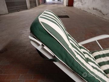 n. 2 robuste sedie/sdraio da esterno bianche a tre posizioni con n. 2 eleganti cuscini a righe bianche e verdi. Fatta una sola foto per comodità. Prezzo non trattabile. Zona piazza Pio XI presso box.