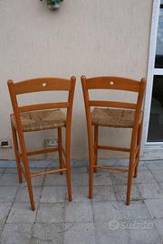 Vendo bellissima coppia di sgabelli da bar in legno di faggio con seduta in paglia intrecciata. Perfette per cucina con penisola o isola, case di campagna