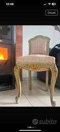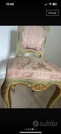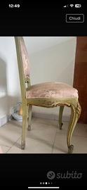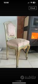 Elegante coppia di sedie in stile vintage, con struttura in legno massello finemente decorata a mano.