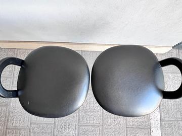 Coppie di sgabelli vintage, color nero con seduta in pelle.