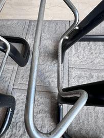 Entrambi gli sgabelli sono in ottime condizioni. Le sedute sono praticamente perfette. I punti critici si possono vedere dalle foto: appoggia piedi leggermente arrugginiti e piedi degli sgabelli con dei piccoli difetti.