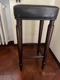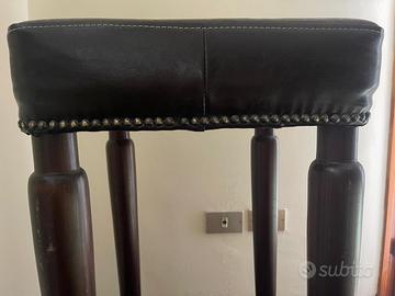 Vendo coppia di sgabelli con gambe in legno e seduta in vera pelle. Colore marrone scuro. In condizioni molto molto buone. Le misure sono 36x36 h 78. Per visionarli e ritirarli zona Cesena centro