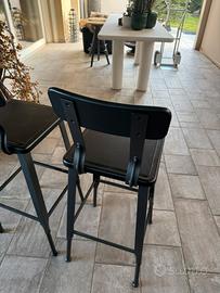 Vendesi bellissima coppia di sgabelli alti dal design industriale, perfetti per penisole cucina, banconi bar o tavoli alti da esterno/interno.