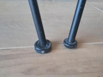Vendo coppia di sgabelli SKLUM, utilizzati per un solo anno. Le condizioni degli sgabelli sono ottime ma presentano due piccoli difetti che potete vedere in foto. Dei leggeri (quasi impercettibili) segni di usura sulle gambe e (difetto più importante), ad una delle gambe manca un gommino che purtroppo è stato mancante sin dall'inizio. Noi abbiamo sempre risolto mettendo sotto il piedino mancante, un gommino per avere la stessa altezza. Il valore sul sito degli sgabelli nuovi è di 149,90 €. La seduta degli sgabelli è di 65 cm, larghezza 50 cm, profondità 54 cm. scambio solo a mano