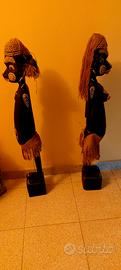 Vendo splendida coppia di statue in stile etnico africano, realizzate in legno scuro. Si tratta di due figure (maschile e femminile) imponenti e molto decorative, ideali per dare un tocco di originalità e calore a salotti, ingressi o ambienti in stile etnico.