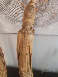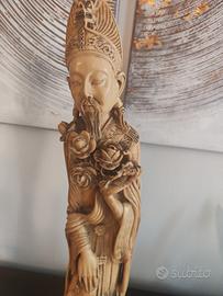 sono due statue in materiale forse avoriolina e stessa cosa per la scritta forse in cinese che compare al di sotto,altezza 70 cm,le ho ereditate ma non fanno per me.