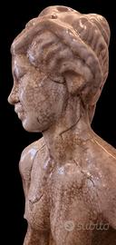 Questa raffinata coppia di statue, realizzate in Francia nel pieno periodo Liberty, rappresenta due figure umane a grandezza naturale, modellate con straordinaria cura nei dettagli anatomici e nelle espressioni.