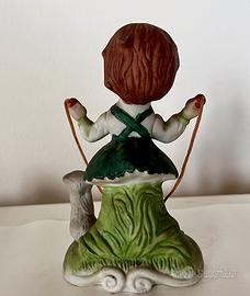 2) statuina raffigurante una bambina che gioca con la corda, marchiata Capodimonte , altezza 12 cm