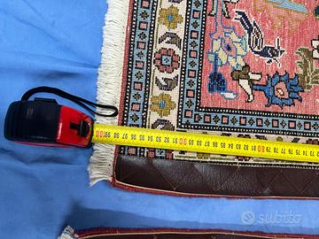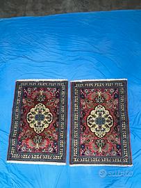 Vendo coppia di tappeti persiani Ardabil autentici, annodati a mano, in ottime condizioni. Misure: 96 × 68 cm ciascuno Origine: Persia (Iran), annodati a mano Design: medaglione centrale floreale, cornice decorata Condizione: ottimo stato, lana e colori ben conservati Ideali come tappeti da comodino, ingresso o decorativi. Consegna a mano zona Milano e dintorni, eventuale spedizione da concordare. Prezzo trattabile