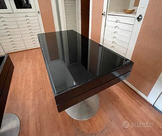 Svendo due tavoli per arredamento negozio, manifattura pregevole, base in metallo e ripiani in legno nero, MOLTO PESANTI 160x80 80x80