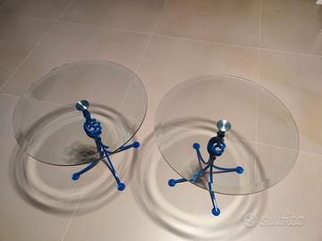 Vendesi coppia di Tavolini/comodini con ripiano in cristallo e base in ferro battuto color blu elettrico in ottimo stato.