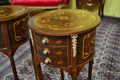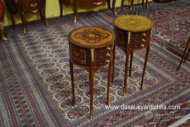 Coppia di tavolini-comodini tondi stile Luigi XV
