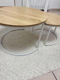 Vendo 2 tavolini da salotto moderni, in legno chiaro con struttura in metallo bianco. Condizioni ottime.